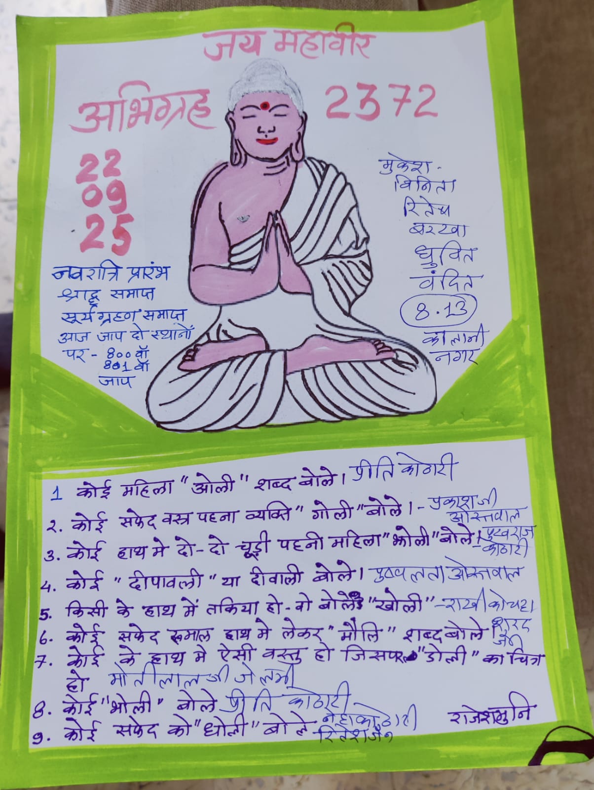 अन्य संतो द्वारा दिए गए सभी अभिग्रहो की जानकारी